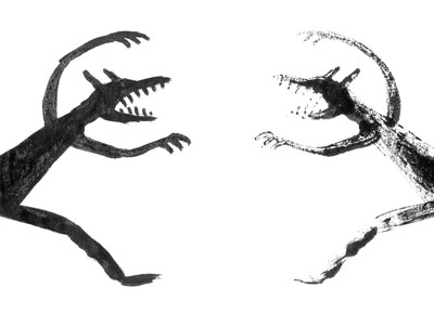 Quand le loup est un loup pour lui-même. À chaque double page un loup s’adresse à son double (reproduit à la façon du test de Rorschah). Album sans paroles.