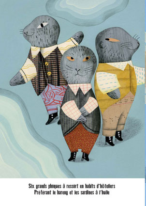 Six saucisses à roulettes en vacances au pôle Nord Grelots grelottant sous le vent menaçant Six saucisses à roulettes en vacances au Pôle Nord cherchaient un abri pour y passer la nuit